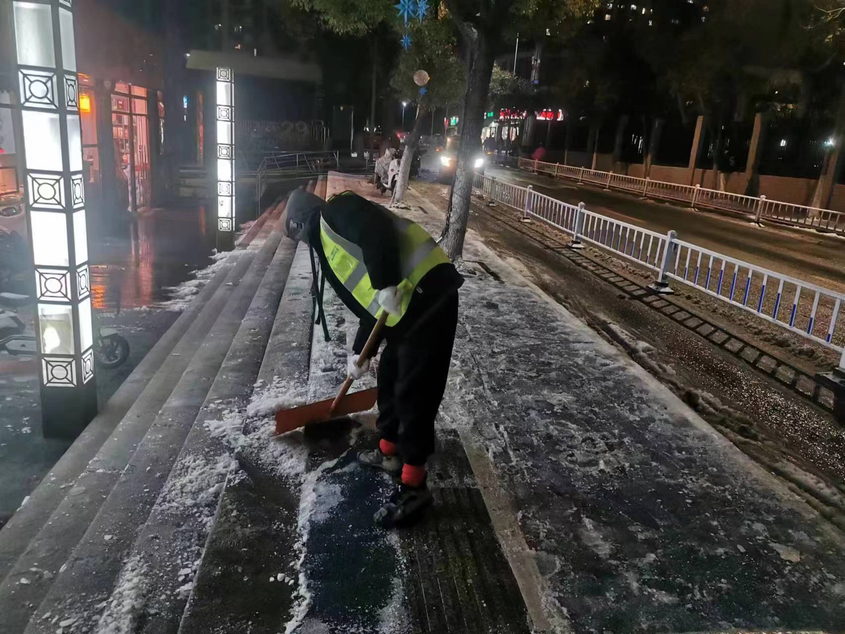 扫雪除冰中,南京还及时调整工作重点。22日20时,南京主城区内的主次干道和高架桥梁交通情况整体较好,南京市扫雪防冻指挥部及时调整工作重点,在做好高架、桥梁、坡道、匝道扫雪除冰的前提下,加强学校、医院、农贸市场、地铁出入口、公交站台、过街天桥等地点的扫雪除冰工作,并将扫雪力量由快车道向慢车道、人行道、背街小巷延伸,加强视频巡查与人员路面巡查频次,发现结冰区域,及时进行清理,消除安全隐患。