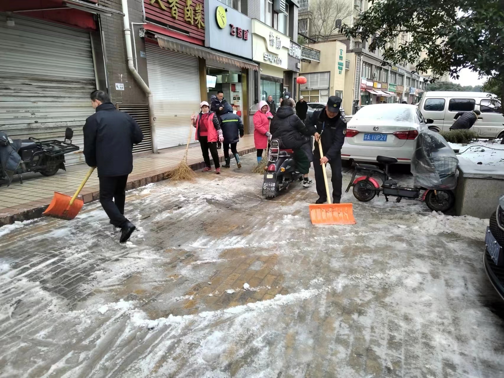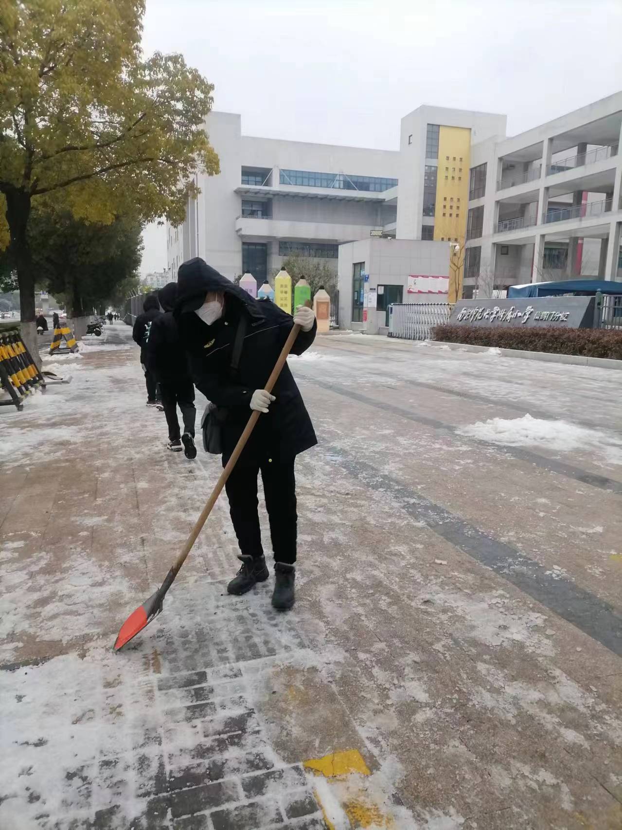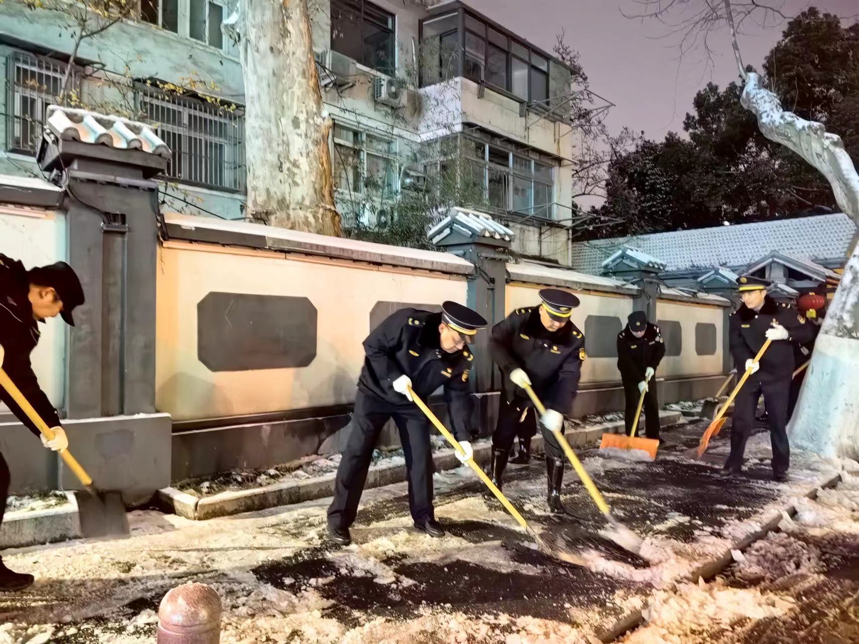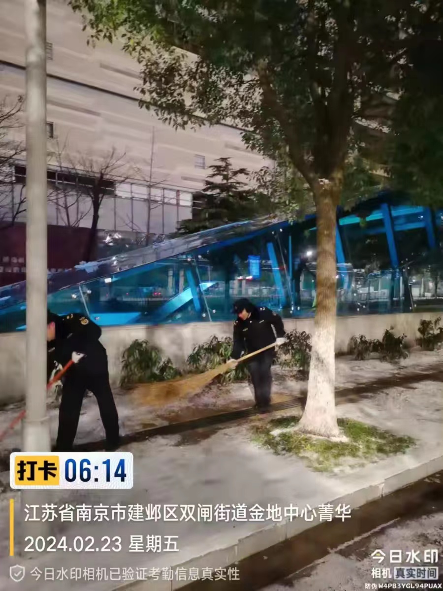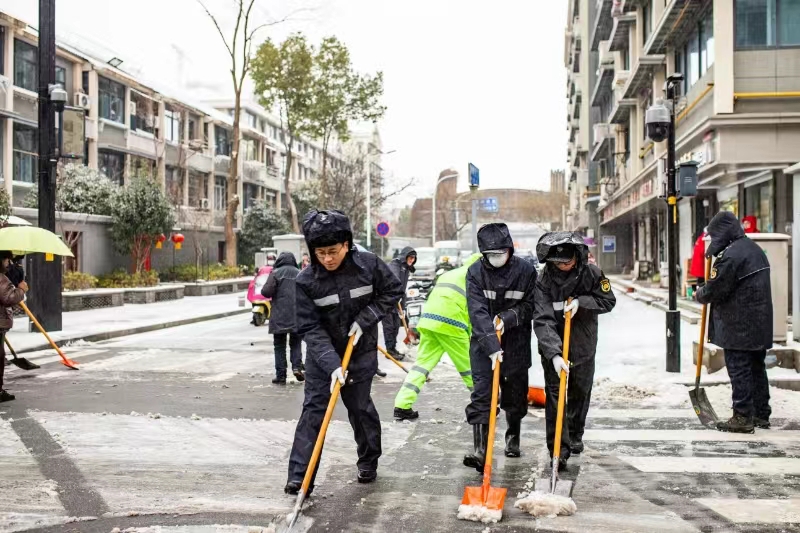 今早,很多城管人又接着对农贸市场、地铁、公交、学校周边等地开展扫雪除冰作业。建邺区城管部门组织各街道城管紧盯地铁站口、公交站台、农贸市场、公园景区等重点区域,铺设防滑垫,清扫冰雪,每隔1小时巡查一次,保障道路安全畅通。鼓楼区加强对农贸市场、地铁口、公交站台、学校周边、背街小巷、小区出入口、人行天桥等地段人工除雪除冰,保障市民出行安全。