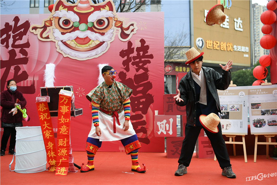 (特约摄影 史康 15:27摄 17:16上线)2月24日,常州市钟楼区五星街道平岗社区举行“沉浸式”民俗文化集市,通过表演舞龙、猜灯谜、杂技、非遗烙画等传统民俗文化节目,喜迎元宵佳节的到来。