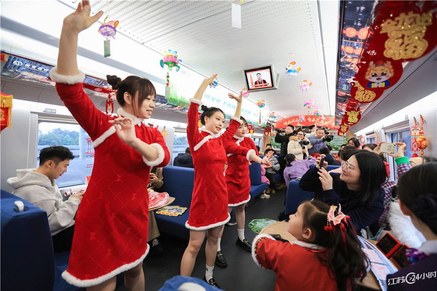 ||南京:高铁列车里迎元宵