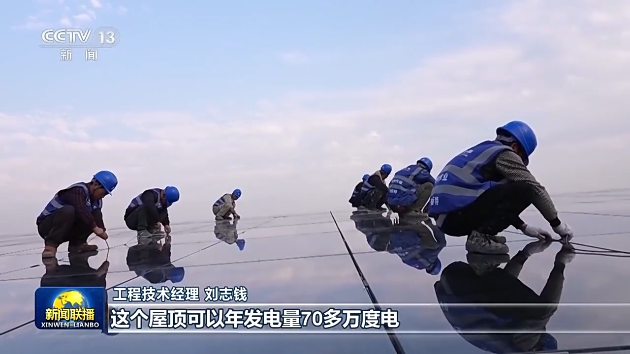 在浙江,钱塘江畔的地标性建筑杭州大会展中心迎来开年后的首个集中施工期,工程人员为这片屋顶穿上“发电外衣”。与以往的屋顶光伏板有所不同,这种新型光伏板像透明玻璃,和建筑物浑然一体,既有“颜值”又绿色低碳。