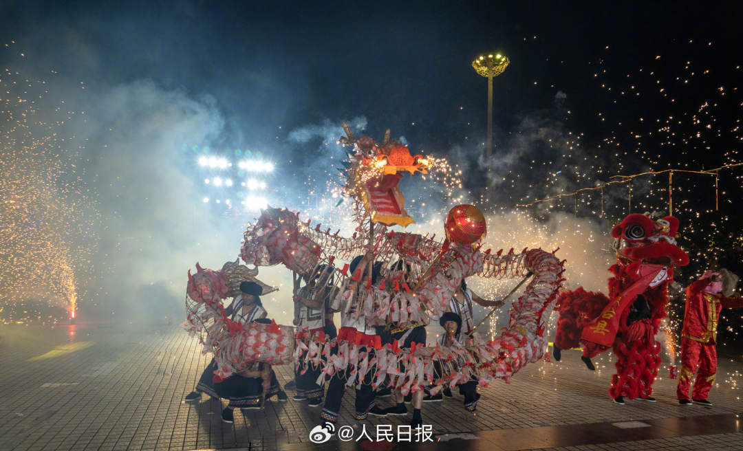 2月23日,湖北恩施,来自建始县花坪镇的火龙表演队参加舞龙大赛。20支舞龙表演队欢度元宵佳节,氛围感拉满。