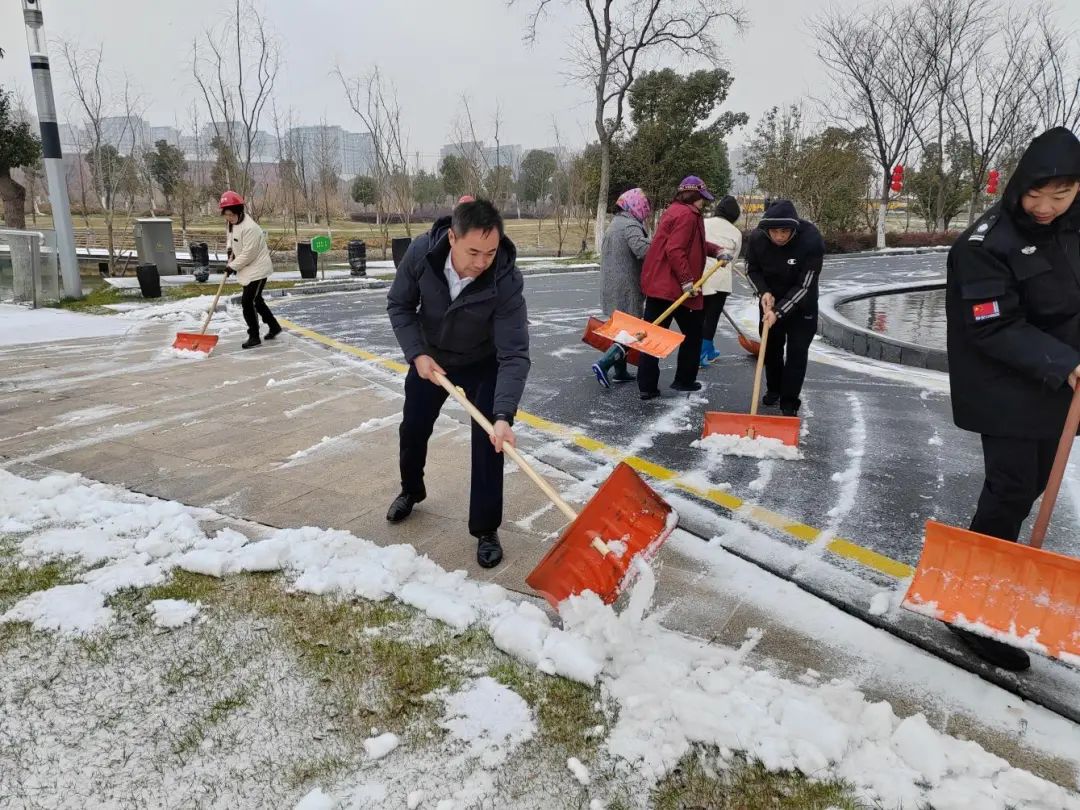 开发区根据“全民发动,全民扫雪”工作要求,在保障早高峰通勤基础上,进一步开展扫雪防冻工作,做好全民扫雪动员,动员辖区内机关、企事业单位积极参与扫雪防冻,督促沿街商户及企业主动承担“门前三包”责任,自觉清扫门前积雪。