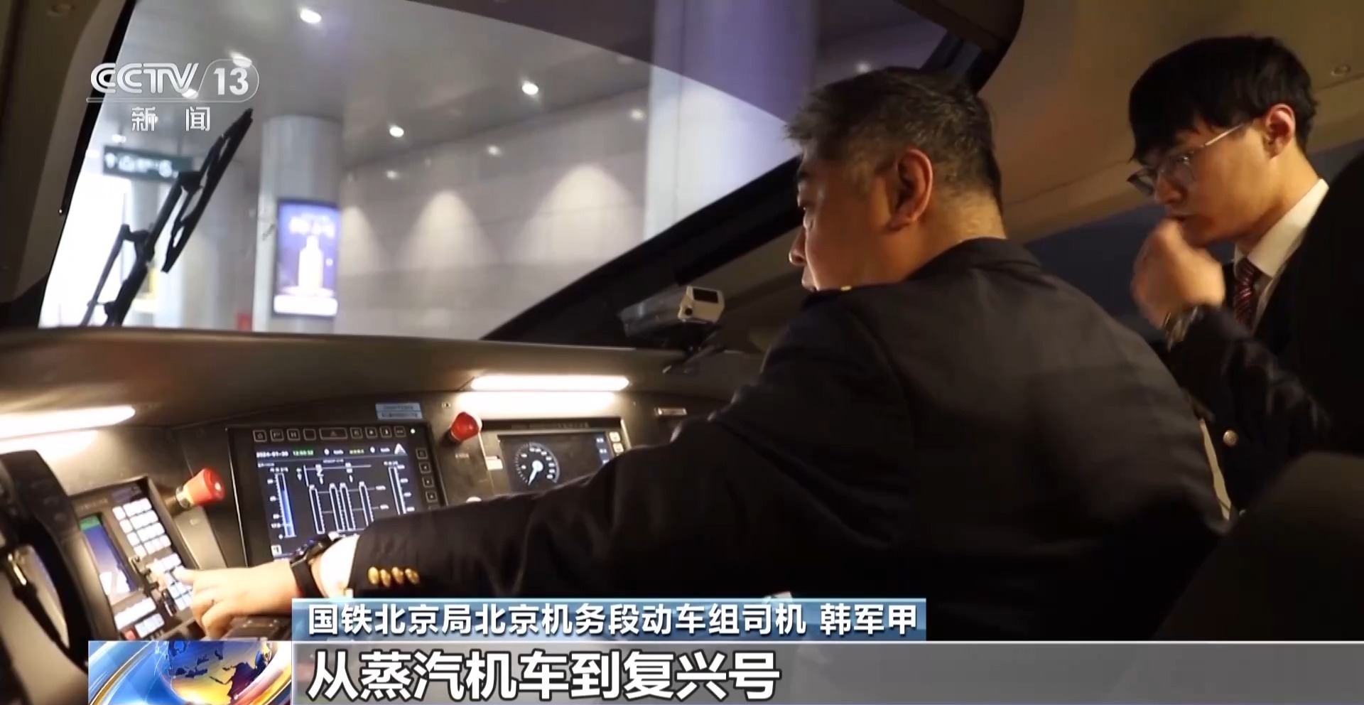 国铁北京局北京机务段动车组司机 韩军甲:我开了32年的车,手里有9本驾照,从蒸汽机车到复兴号,总共开过35种车型。到了京雄以后,没有新的驾照,但是一切都是崭新的,对于我来说很有动力。