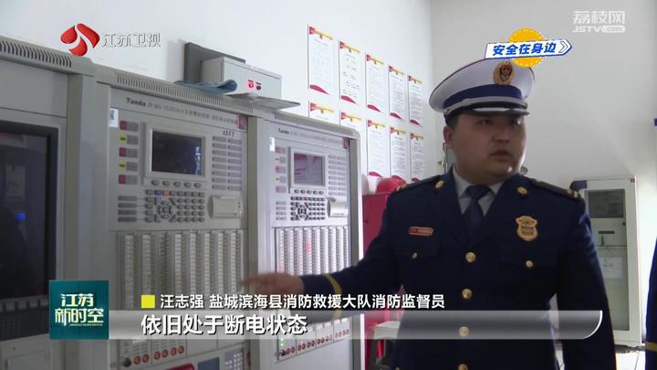 盐城滨海县消防救援大队消防监督员汪志强检查后指出,火灾自动报警系统处于断电状态,等于停止使用,一期火灾自动报警系统还显示7条故障信息。