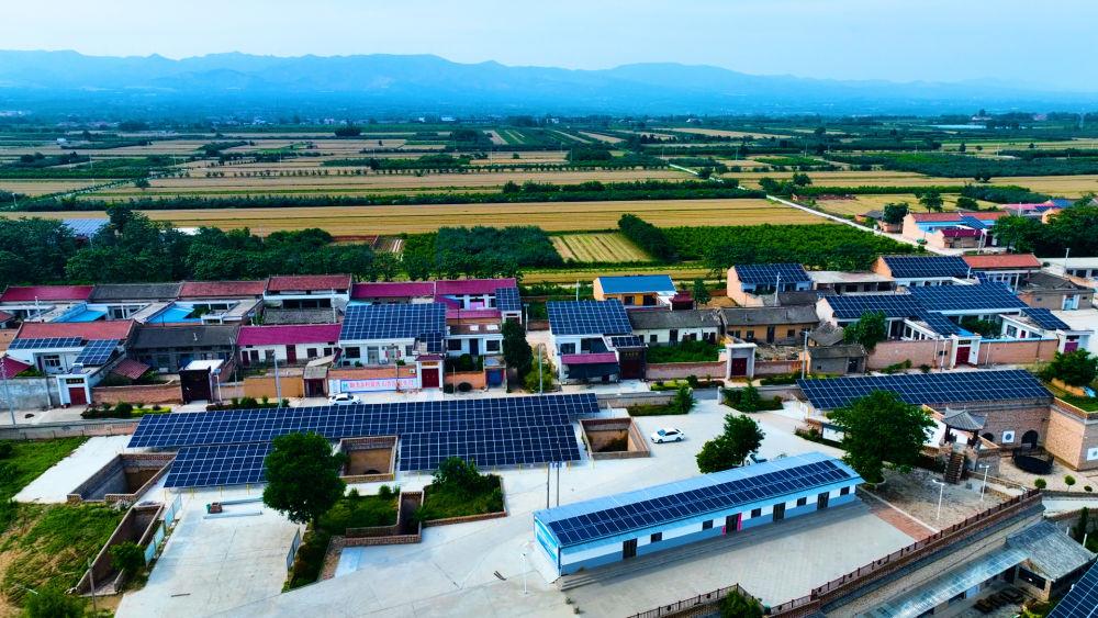位于黄河岸边的山西运城庄上村,工作人员加紧三期光伏铺设,荒废窑洞变成了光伏庭院,荒坡荒地改造成了光伏廊道,村民生产生活全部电气化。包括山西在内,北京、广东等10个省区市的乡村,屋顶光伏工程正全面推开。