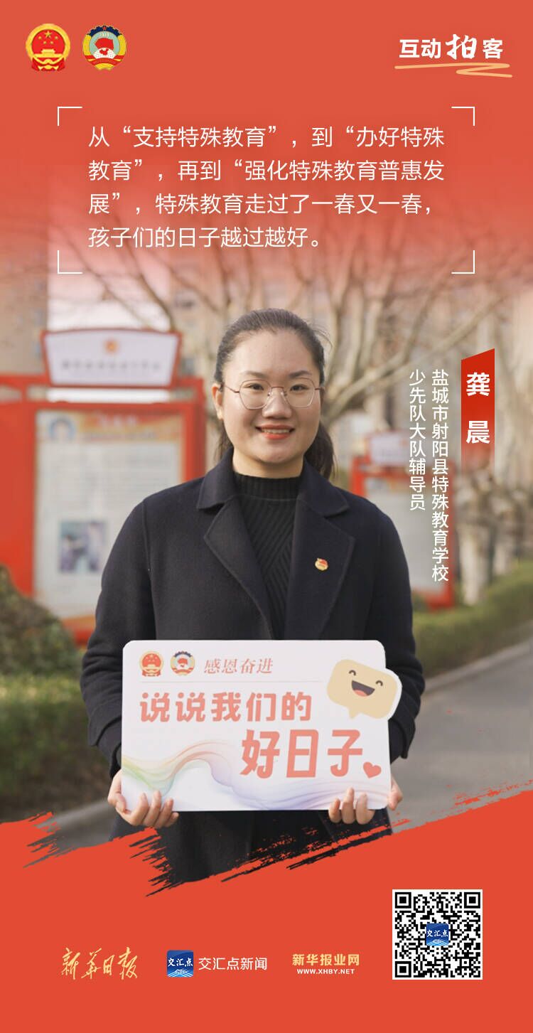 龚晨在这所特殊教育学校任教近八年,回忆当初,从南京特殊教育师范学院毕业来到这里,面对一群走路需要扶、吃饭需要喂的孩子,龚晨更加坚定了为特殊教育行业奉献的信念。“从‘支持特殊教育’,到‘办好特殊教育’,再到‘强化特殊教育普惠发展’,特殊教育走过了一春又一春,孩子们的日子越过越好!”