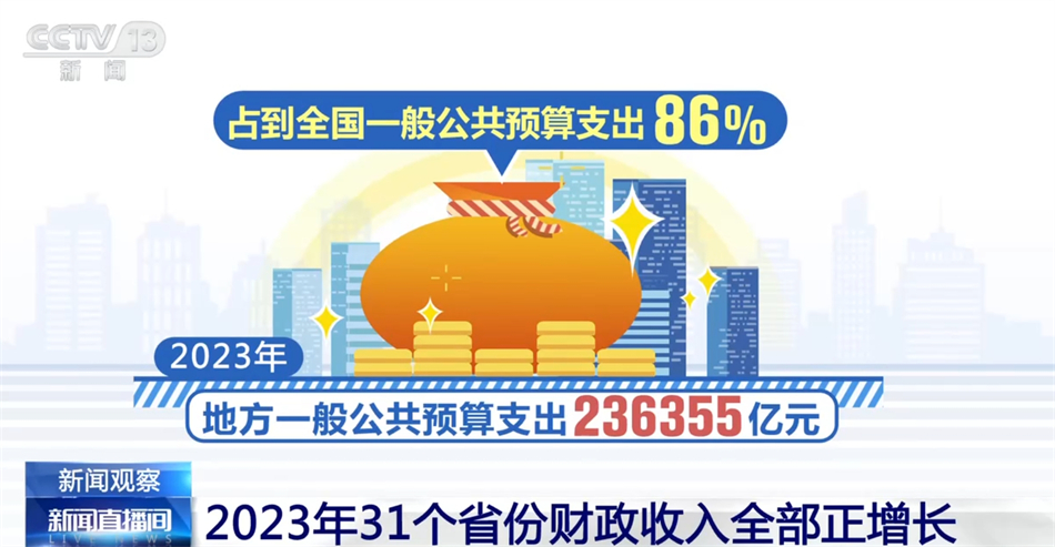 而从支出来看,2023年,地方一般公共预算支出236355亿元,占到了全国一般公共预算支出的86%。业内人士分析,2023年,地方财政运行在推动高质量发展方面发挥了非常重要的作用。像广东用头等力度支持保障“百县千镇万村高质量发展工程”,2023年省级安排资金1490亿元,其中落实到县级统筹资金约六成,有力带动社会资金和金融资本投入乡村振兴产业项目。