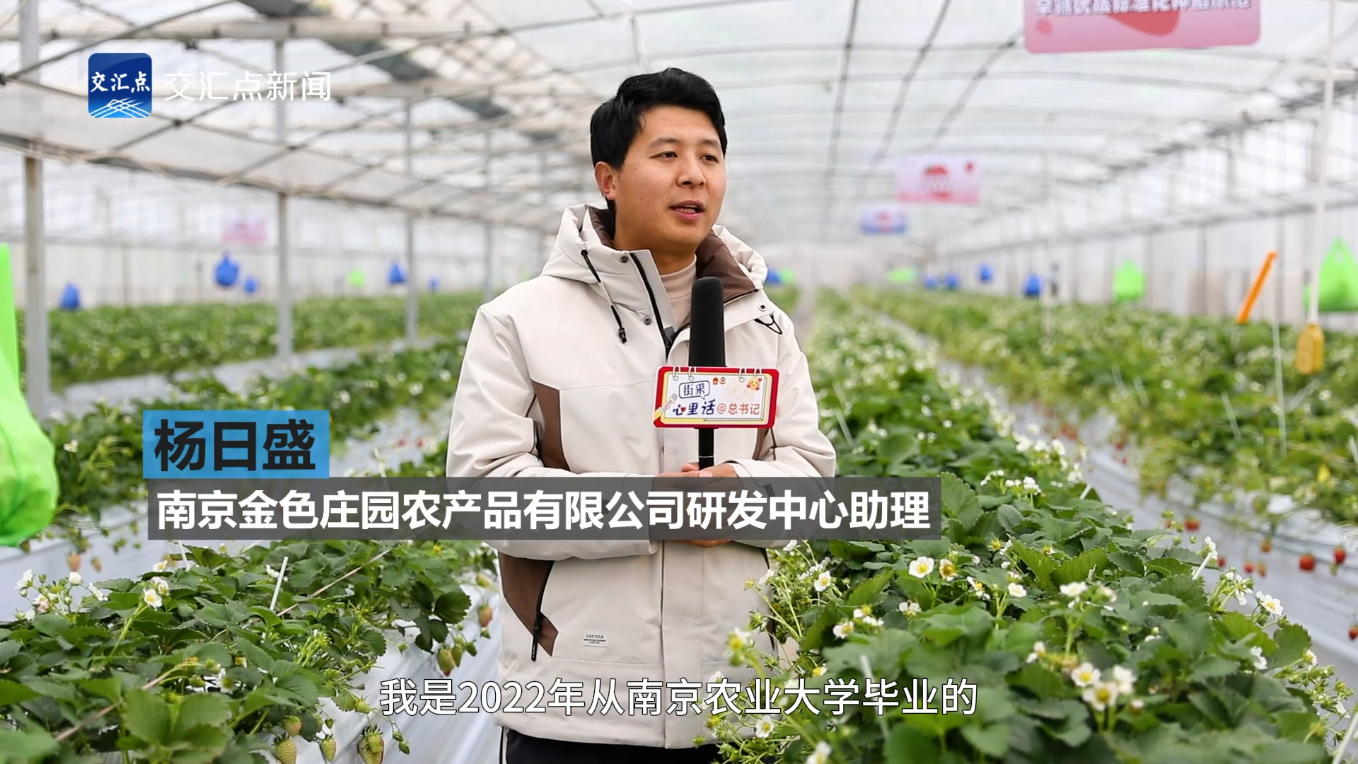 2022年我从南京农业大学毕业之后就选择来到这个公司。越来越多的大学生、研究生都投入农业这个行业当中来为农民创富增收。我的主要工作是草莓技术研发工作。现在我们实现了整个草莓没有农药残留。