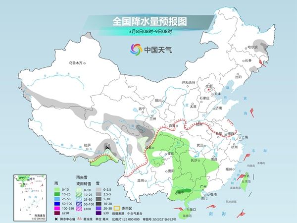 未来三天(3月8日至10日),北方大部多晴朗干燥天气,西南地区东部、江南、华南等地阴雨天气频繁。受持续阴雨影响,南方多地气温将较常年同期偏低,而北方大部则在气温波动中回升,昼夜温差逐渐拉大。