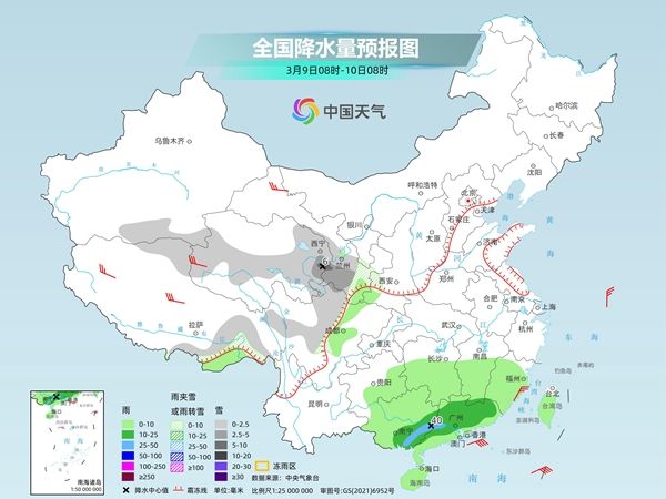明天,西藏东南部、青海中东部、甘肃南部、川西高原中北部等地部分地区有小到中雪或雨夹雪,其中,青海东部等地局地有大雪。四川盆地西部、贵州东南部、湖南中南部、江西中南部、华南大部等地部分地区有小到中雨,其中,广西东南部、广东西部等地部分地区有大雨。