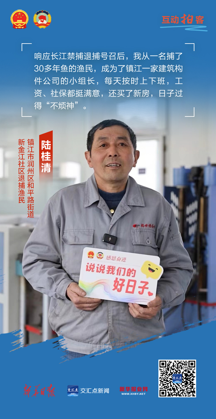 作为一名老党员,较早“上岸”换了“饭碗”的陆桂清还鼓励和带动了身边一批退捕渔民兄弟,一起到自己上班的公司再就业。看到大家的日子也都越过越红火,陆桂清很是自豪。