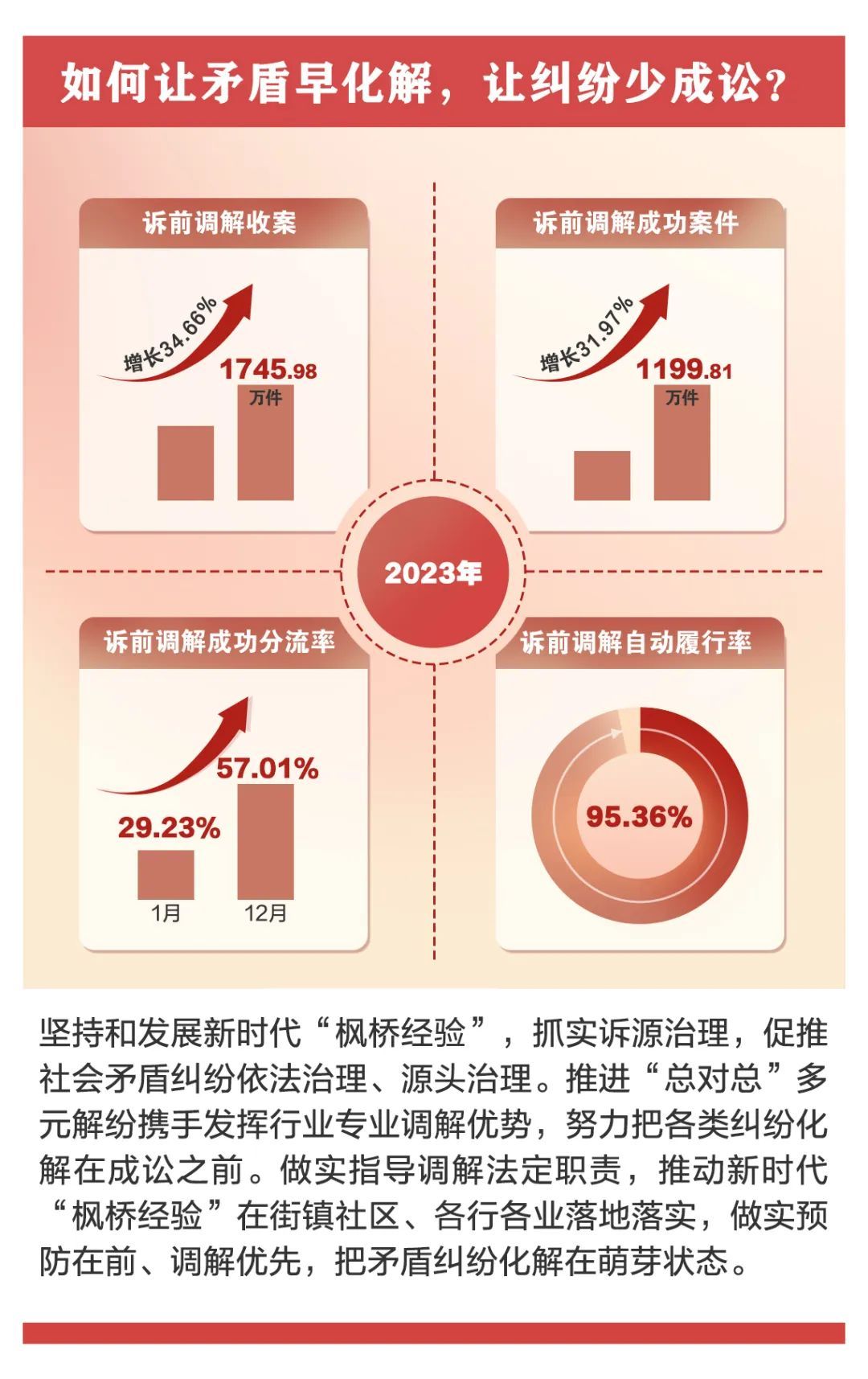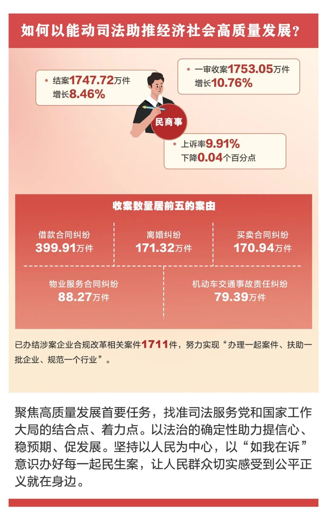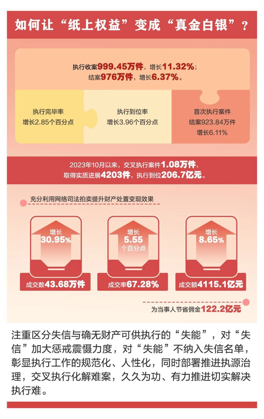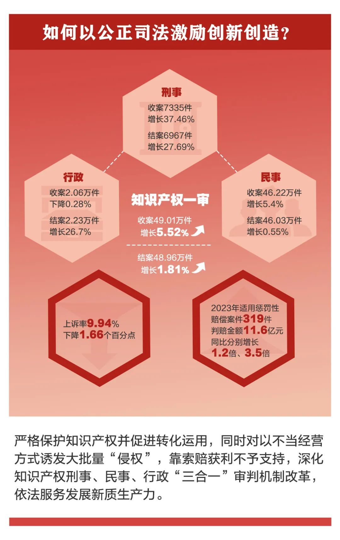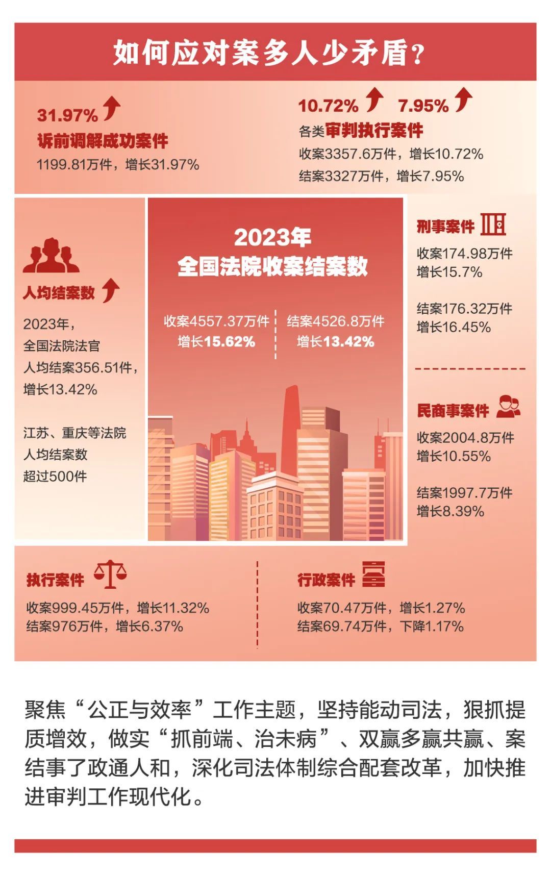 今天(3月9日),最高人民法院发布了2023年人民法院审判执行工作主要数据。过去一年,人民法院坚持能动司法,狠抓提质增效,审判执行工作质量、效率、效果稳中有进,一起走进这些数据,解读审判执行工作中的“数字密码”。