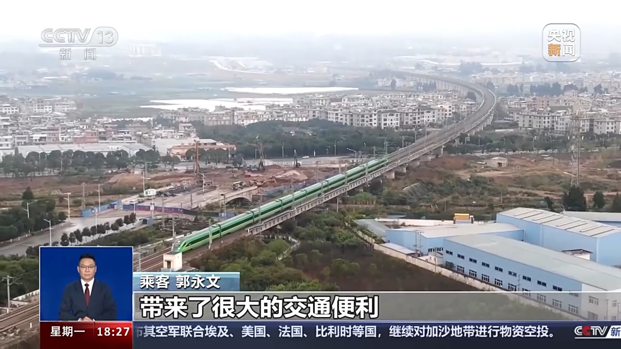 乘客 郭永文:在玉溪坐D87次列车就可以直达老挝万象,开通这趟专列带来了很大的交通便利。