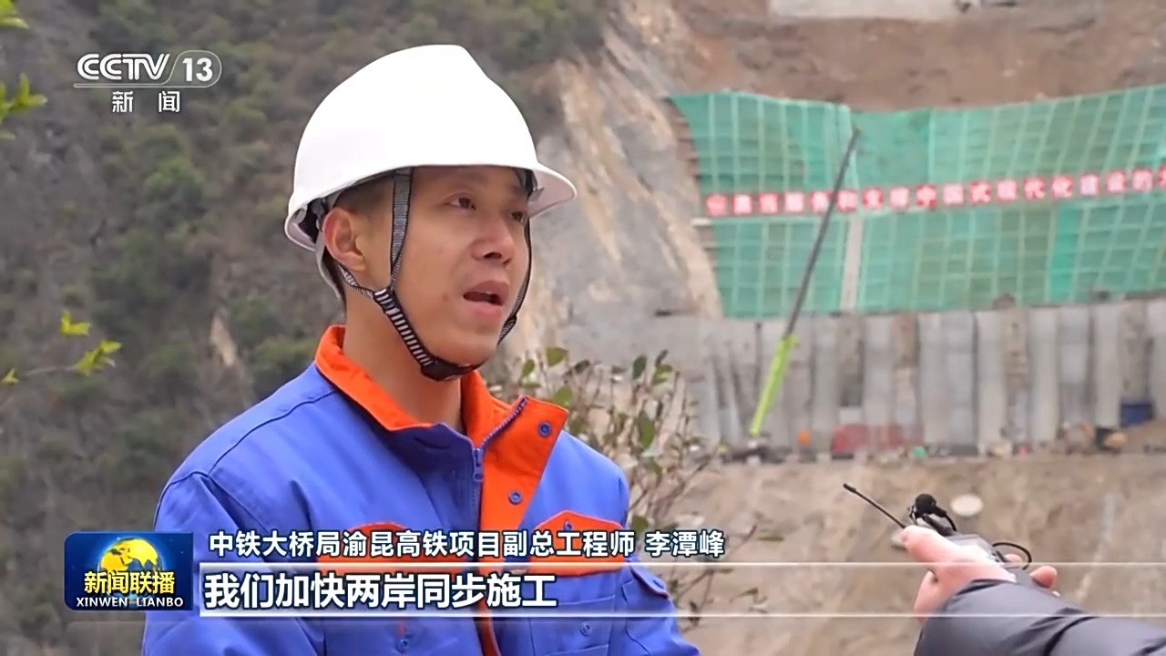 中铁大桥局渝昆高铁项目副总工程师 李潭峰:我们加快两岸同步施工,机械设备正抓紧作业,我们有信心完成今年的施工生产任务。
