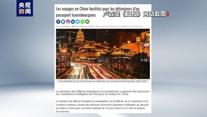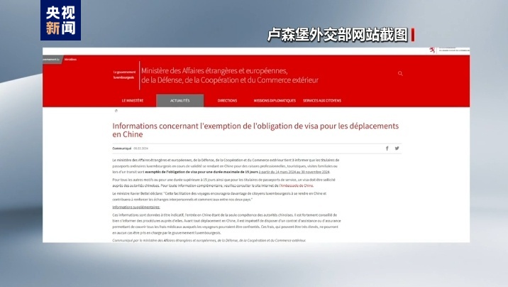 对于3月14日起,中国对包括卢森堡在内6个欧洲国家持普通护照人员试行免签政策,卢森堡外交部刊发新闻公报,介绍中方免签政策,副首相兼外交大臣贝泰尔强调,免签政策将推动更多卢森堡公民赴华,有利于加强卢中两国人文交流与贸易往来。