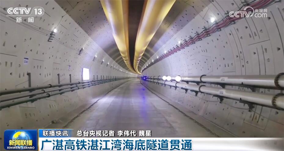3月15日, 广州至湛江高铁控制性工程——全长9640米的湛江湾海底隧道贯通。广湛高铁是我国“八纵八横”高铁网沿海铁路客运大通道的重要组成部分,设计时速350公里,预计2025年底具备通车条件。