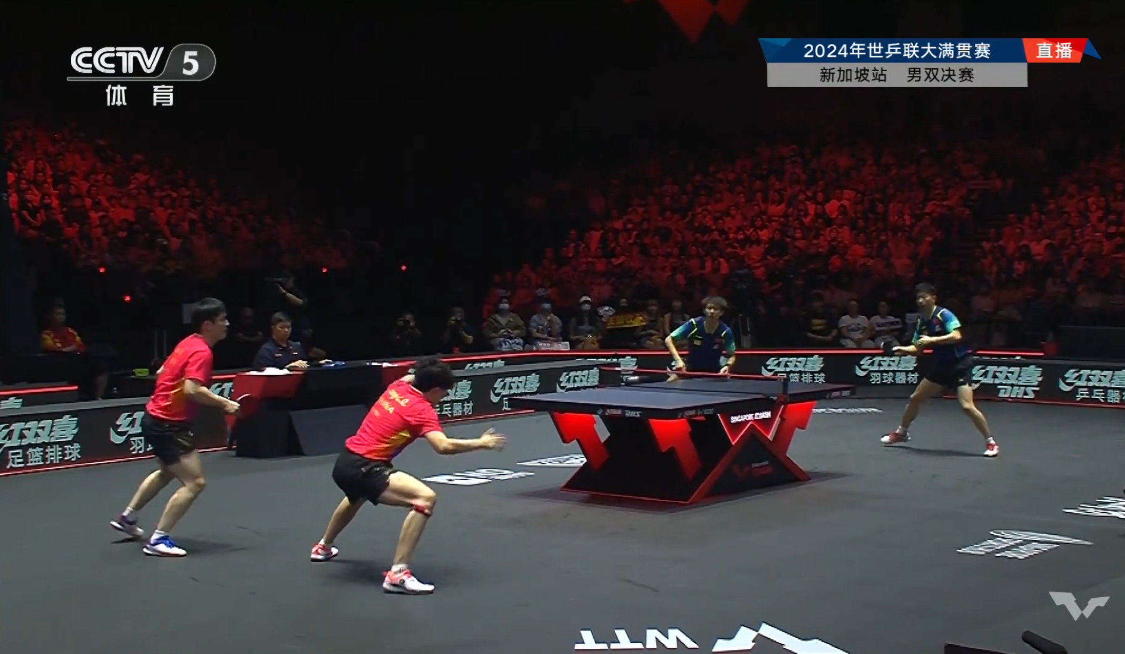 北京时间3月16日,WTT新加坡大满贯赛男双决赛,中国组合马龙/林高远战胜中国组合樊振东/王楚钦,夺得冠军。中国队组合包揽男双冠亚军,祝贺!