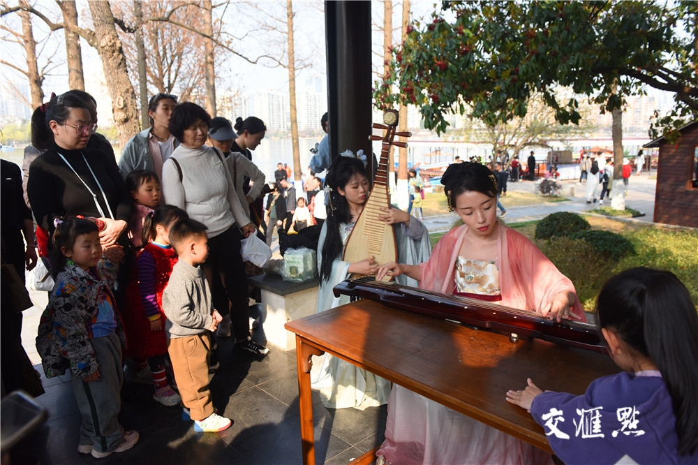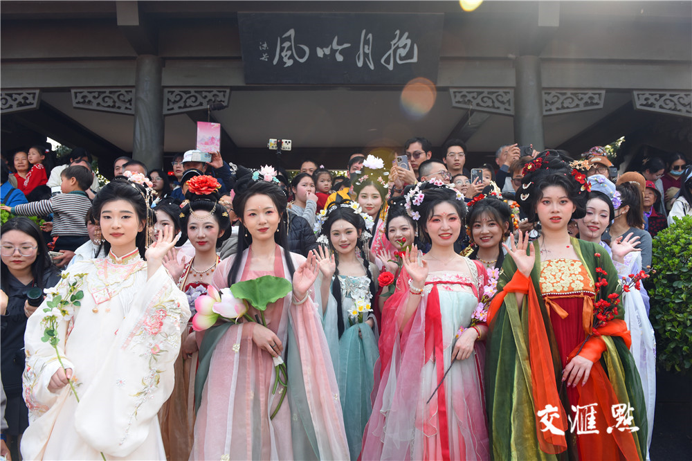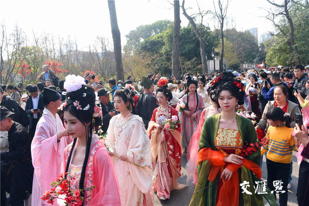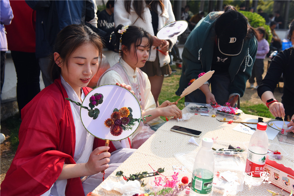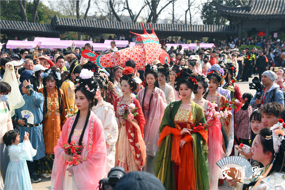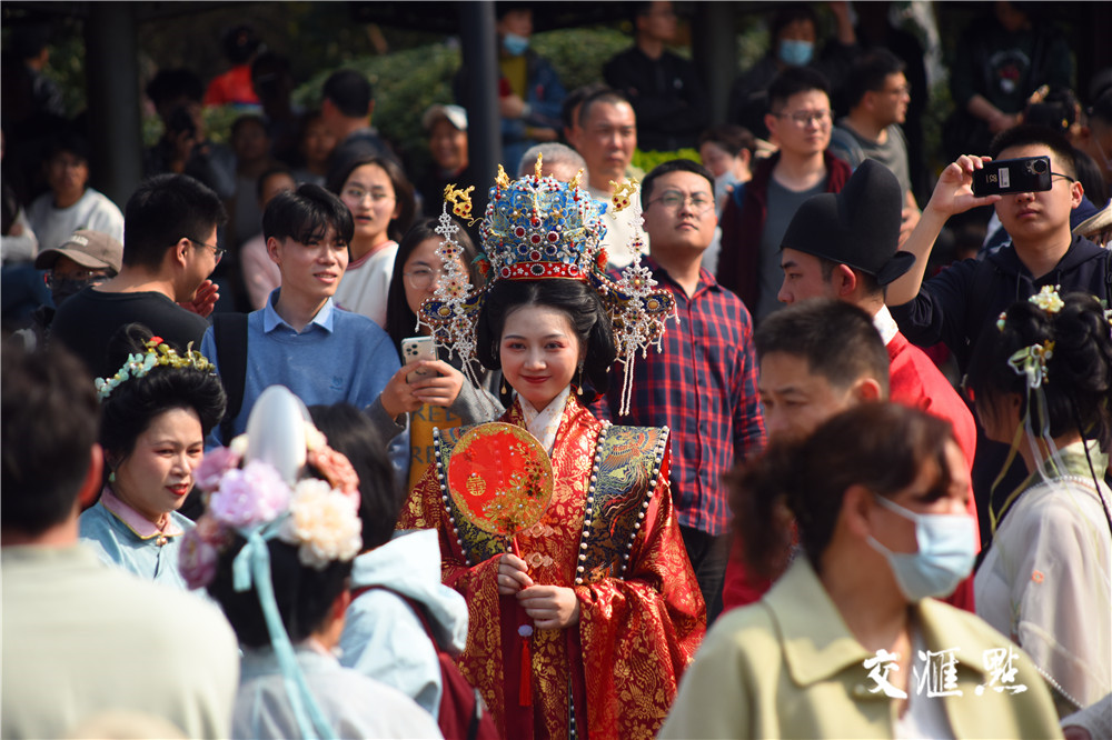 祭花神、汉服巡游、琴棋诗画、春日市集、非遗DIY……市民、游客与身着锦衣华裳的年轻人徜徉在海棠花盛开的莫愁湖畔,沉浸式体验浓郁的国风潮流和传统文化氛围。