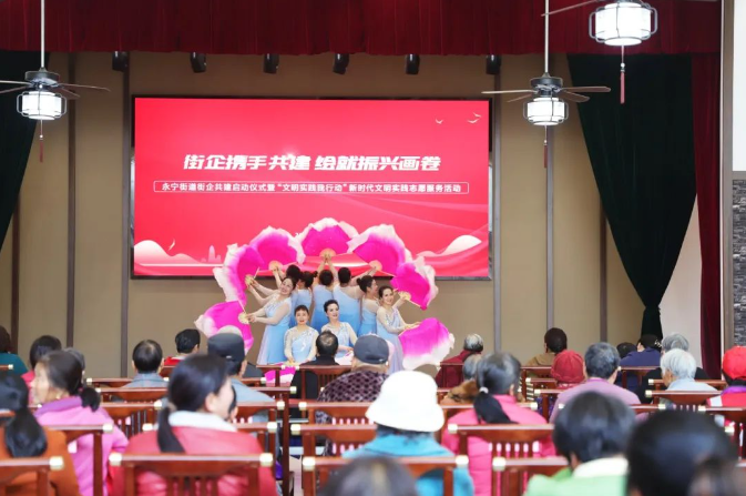 在街企共建启动仪式后,现场还开展了文艺汇演活动,包括歌曲《祖国你好》、舞蹈《我们的中国梦》、戏曲《都有一颗红亮的心》……精彩纷呈的演出节目,展现了居民群众积极向上的精神风貌,丰富了群众精神文化生活,营造了健康和谐的社会氛围。