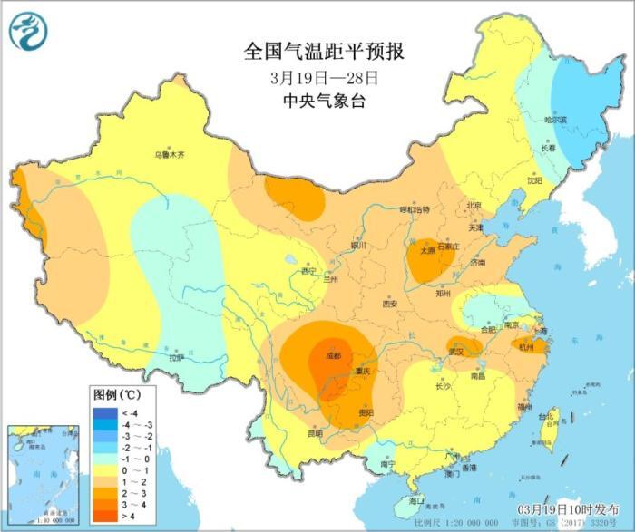 中新网3月19日电 据中央气象台网站消息,未来10天(3月19-28日),江淮、江汉大部、江南北部、重庆东北部、西藏东南部等地累计降水量有50~80毫米。未来10天,除东北地区中东部等地平均气温较常年同期偏低1~2℃外,我国其余大部地区气温接近常年同期或略偏高。