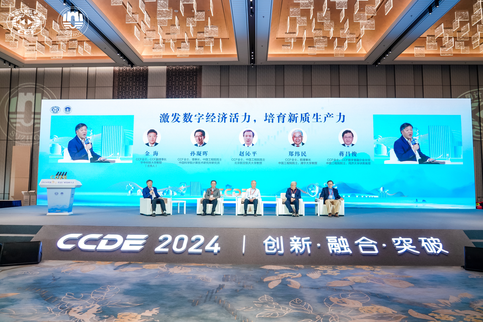 交汇点讯 3月23日,2024中国数字经济产业发展大会在苏州市相城区举行,邀请专家学者、企业代表探讨产业前沿动态,共商未来发展路径,助推促进数字经济和实体经济深度融合,探索加快产业数字化转型路径,不断释放数字对经济发展的放大、叠加、倍增作用。当天举行了院士圆桌论坛环节,四位中国工程院院士围绕“激发数字经济活力,培育新质生产力”主题发表真知灼见。