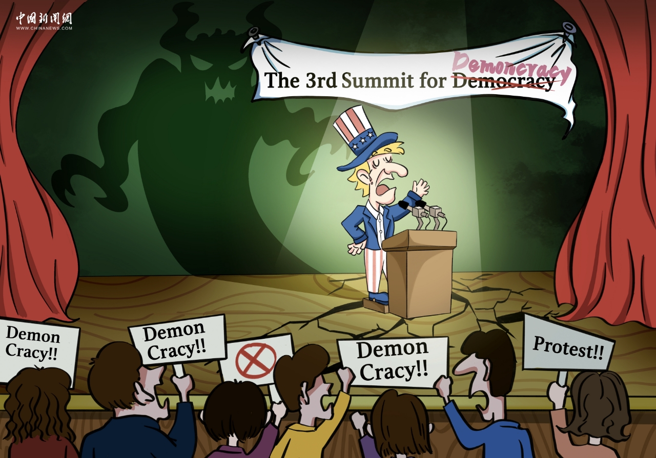 自2021年登场至今,所谓“民主峰会”都在争议声、质疑声中黯然收场。美国利用所谓“民主峰会”一而再、再而三做文章,充当全球民主领袖,挑动世界分裂,制造阵营对抗,收割全球财富,维护自身霸权,Democracy Summit(“民主峰会”)已变成Demon-cracy Summit(恶魔统治的峰会)。当今世界需要的,不是渲染对抗、无益于携手应对全球性挑战的“民主峰会”,而是着眼解决国际社会面临突出问题的团结大会。