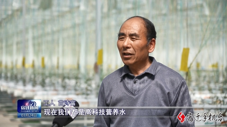 宿迁市宿城区田洼智慧农业产业园工人苗诗富说:“现在我们都是高科技营养水,一个人能管四五亩地,非常轻松。以前三四亩地只能三四千块钱,就很好了,现在全年收入能在两三万块钱。”