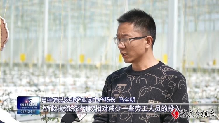 宿迁市宿城区田洼智慧农业产业园生产场长马金明说:“每天的灌溉量大概一升左右,可以避免大水漫灌的浪费,造成土壤板结等各种情况。智能化系统还可以减少一些劳工人员的投入。”
