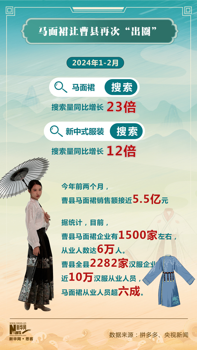 以山东曹县为例,此次马面裙的火爆已经是曹县的二次“出圈”。继上次汉服走红全网之后,马面裙再给这个小县城带来了一波流量和收入。