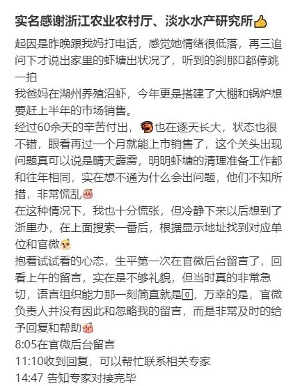 他同时给出了挽救虾苗的建议