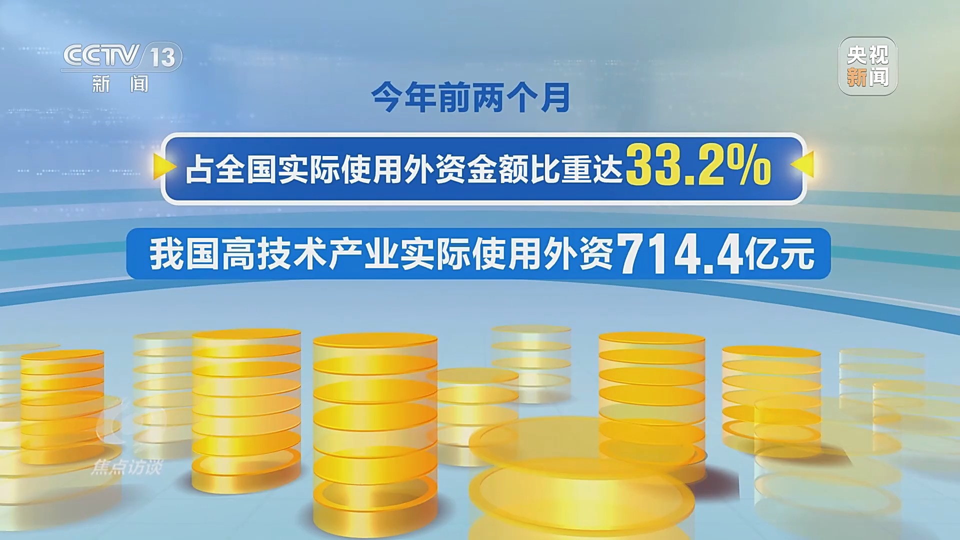 商务部最新数据显示,今年前两个月,我国高技术产业实际使用外资714.4亿元,占全国实际使用外资金额比重为达33.2%。其中高技术制造业实际使用外资282.7亿元,同比增长10.1%。就在本月举行的全国两会上,中国设定了5%左右的经济预期目标,传递了中国经济持续回升向好、长期向好的信心。博鳌论坛参会嘉宾普遍期待,中国经济的持续回升向好和高质量发展稳步推进,为世界经济增长提供更强动力。