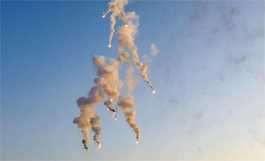 随着襄阳舰多枚干扰弹呼啸升空