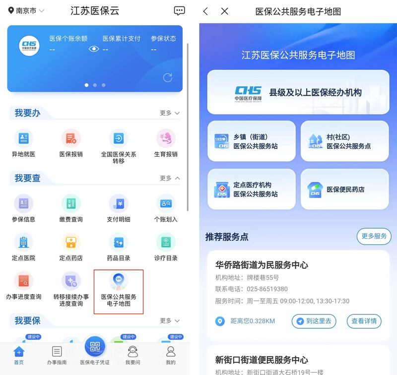 交汇点讯 江苏省医保局3月31日发布消息,依托“江苏医保云”App服务平台,江苏已建成涵盖全省医保经办机构的公共服务电子地图。参保人员只需在电子地图上轻轻一点,即可按图寻“保”,轻松查找附近的医保公共服务点。
