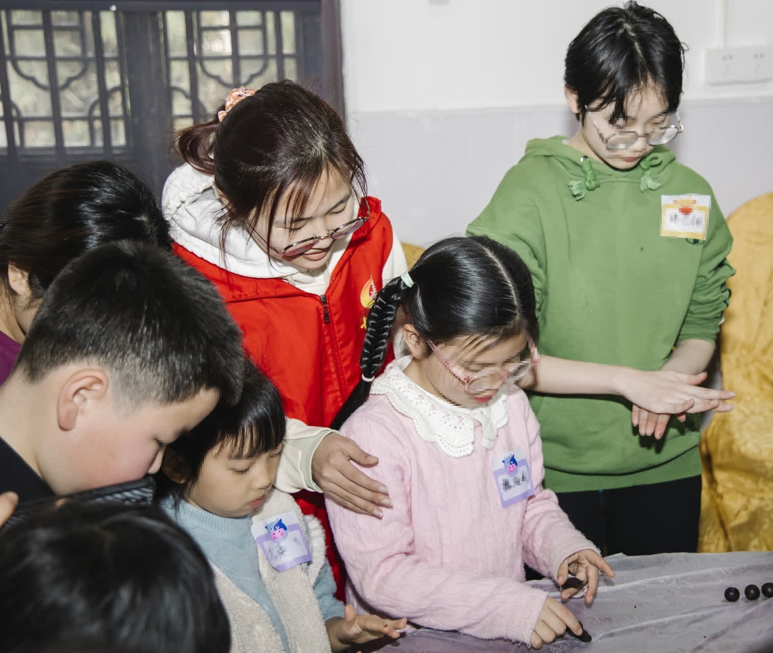 活动伊始,巾帼志愿者通过“重耳与介子推”的典故,向青少年介绍了清明节的历史和风俗习惯,让大家进一步了解清明节。接着介绍了清明节吃青团的习俗,并演示了制作步骤,老师将青团预拌粉放入盆中,缓缓地倒入温水搅拌均匀并揉搓成团,将面团分成大小相近的小剂子,压扁、放入掌心加入适量豆沙馅,用虎口捏住封口,再轻轻地搓成球,一个带着艾草香气的绿油油、圆溜溜的青团就做好了。孩子们忍不住发出一声声惊叹,纷纷撸起袖子开启了“青团大战”。因为是第一次做,有的孩子掌握不好力度,把豆沙馅挤了出来;有的孩子皮擀得太薄,还没装馅皮就破了,但是没有人轻言放弃,在老师的指导,同伴的协助下,功夫不负有心人,很快一个个象征着美好寓意的青团摆满了桌面,轻轻咬上一口,清香四溢,软糯香甜。