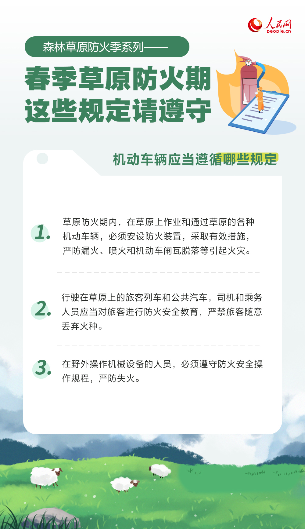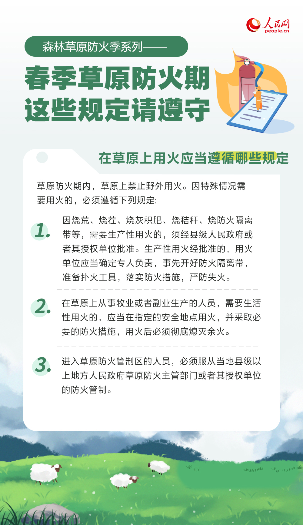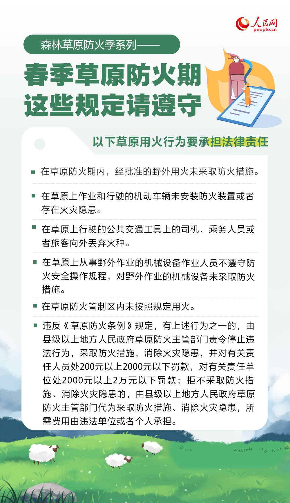 春季气温回升,风干物燥,是森林草原火灾的高发期。草原防火期用火有哪些规定?哪些不当行为将承担法律责任?一起来了解。