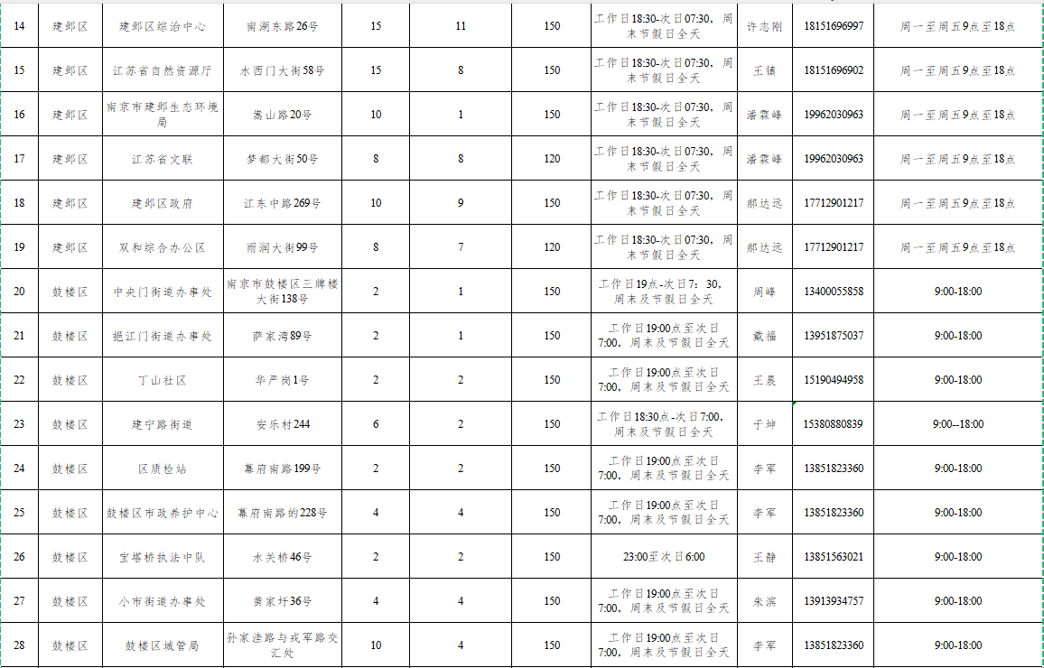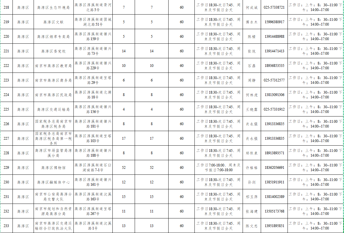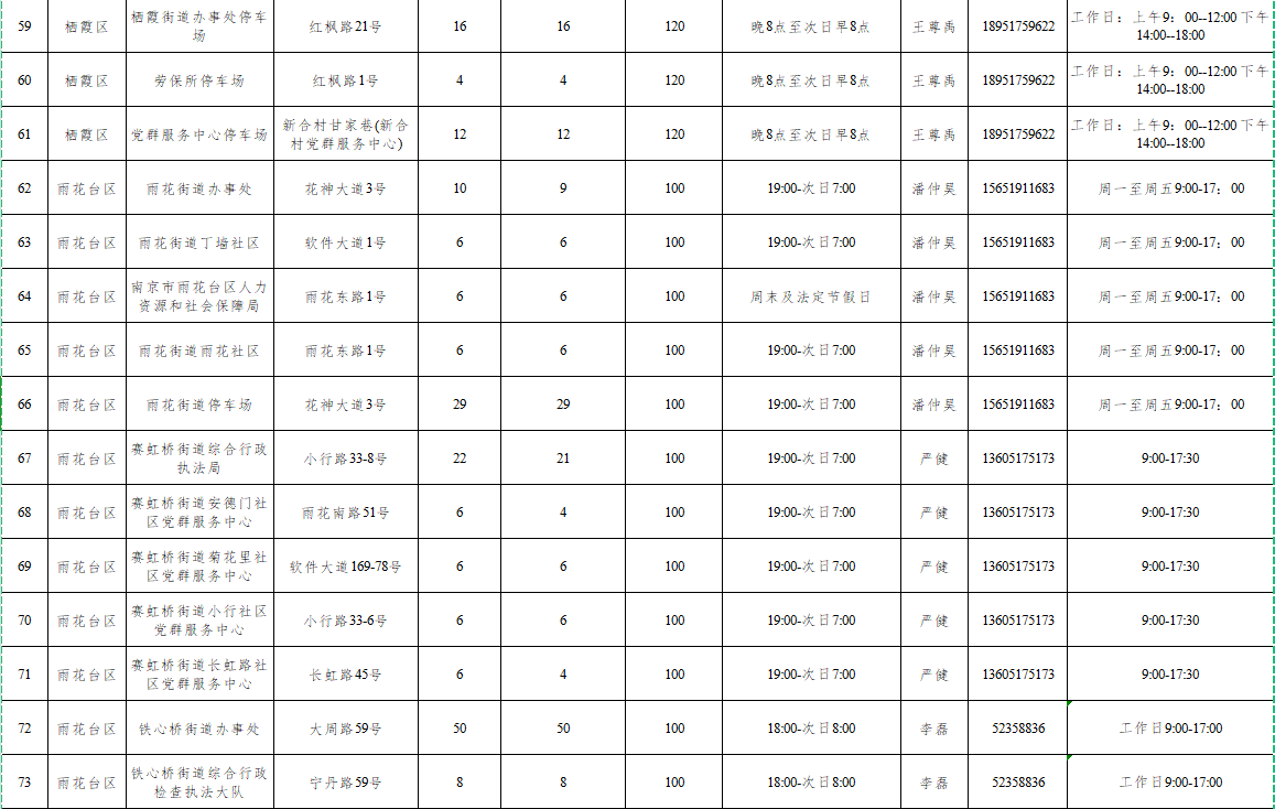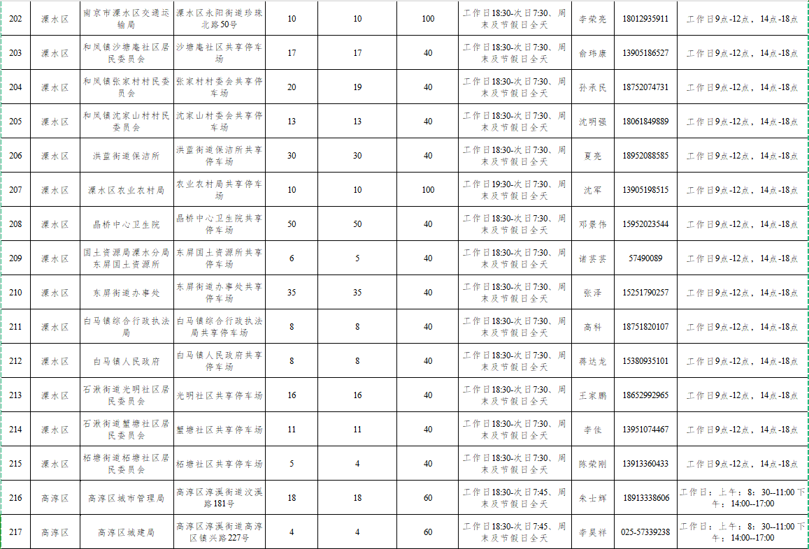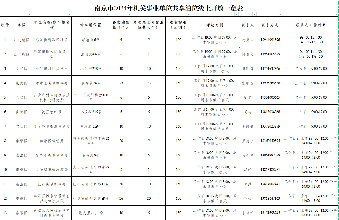 附:南京市2024年机关事业单位共享停车场线上开放一览表