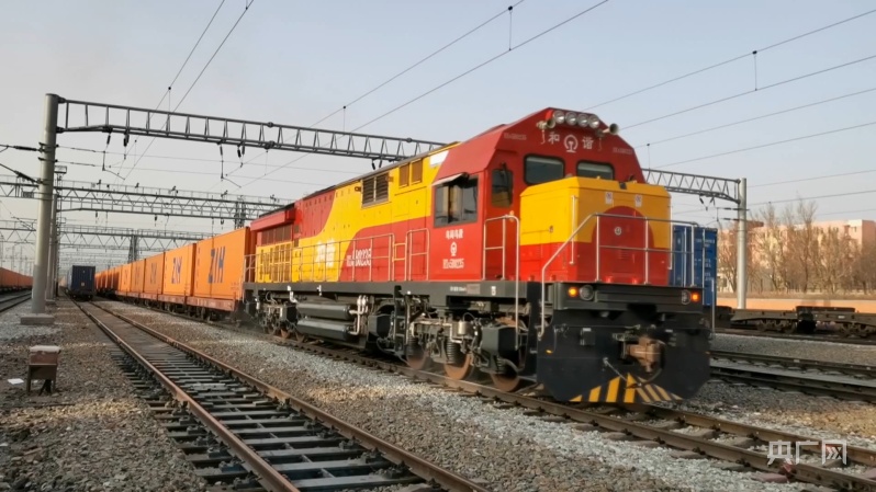 进口班列正在进行换装吊装作业 (央广网发 格日乐图 摄)