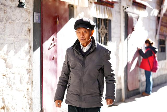 洛桑贡布途经拉萨市老城区的巷道回家(3月27日摄)。给农奴主支完差役