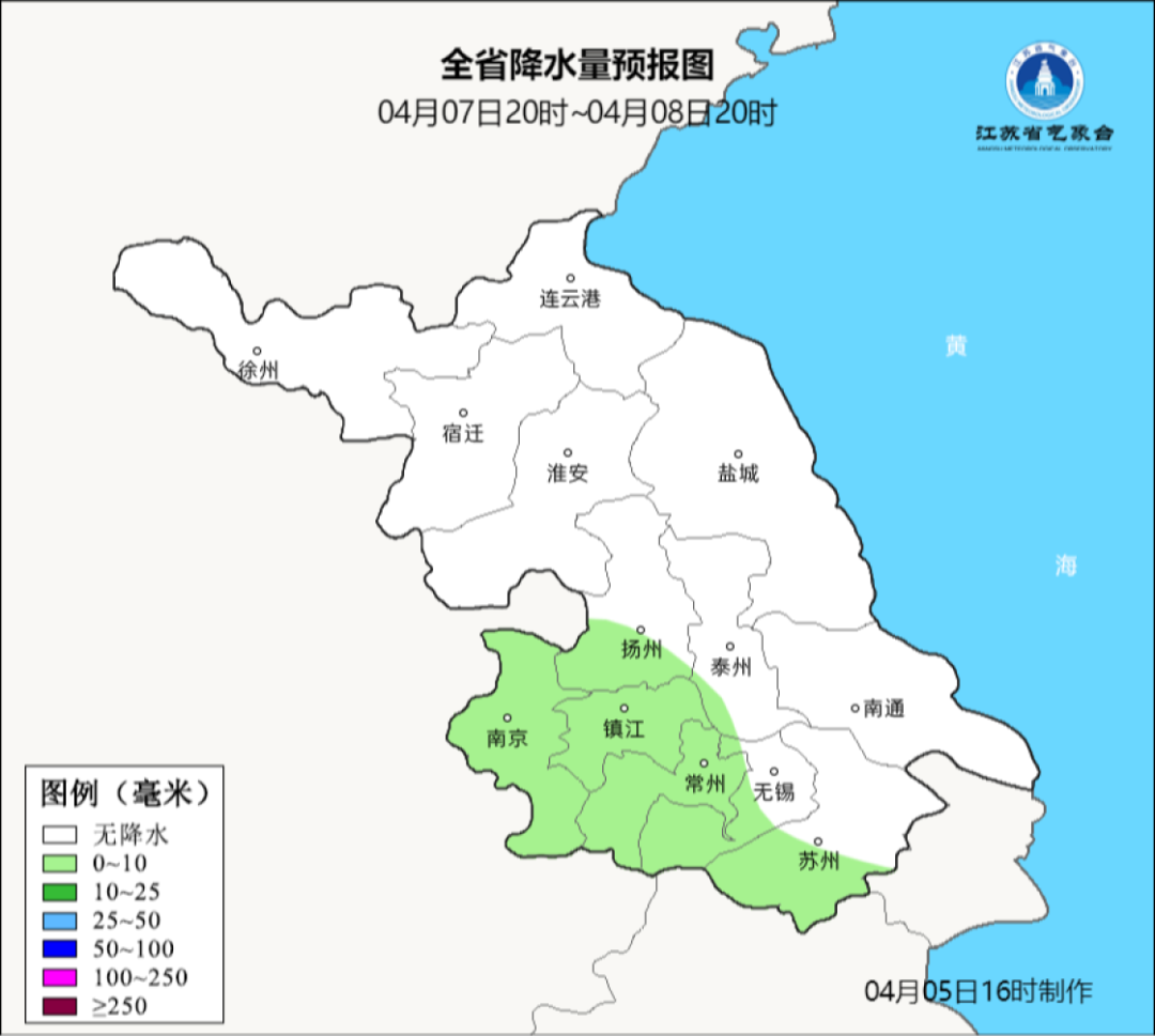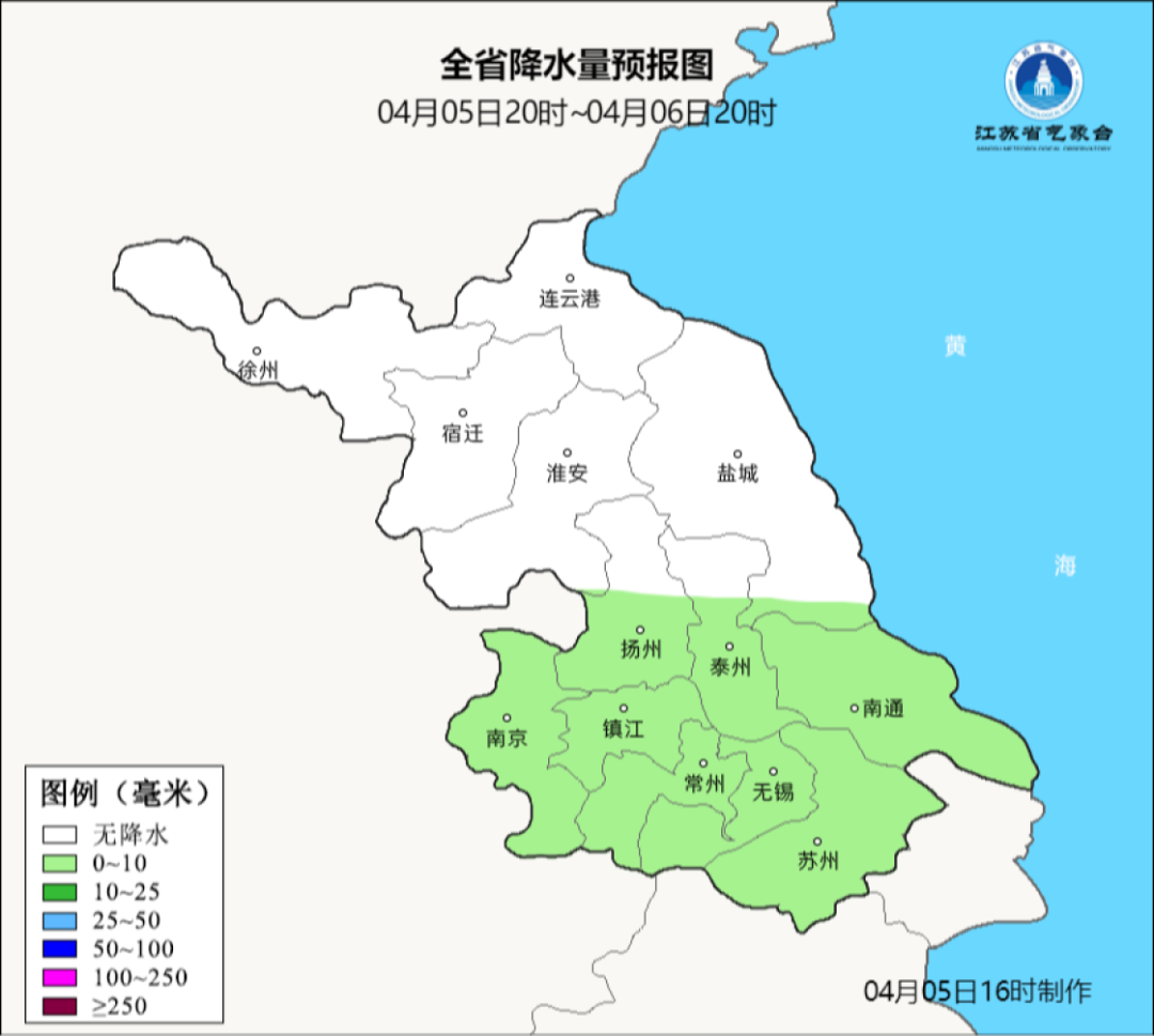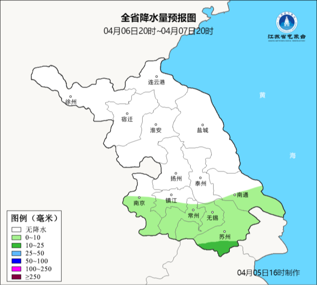 5日夜间至6日白天江苏南部地区有一次弱降水过程。