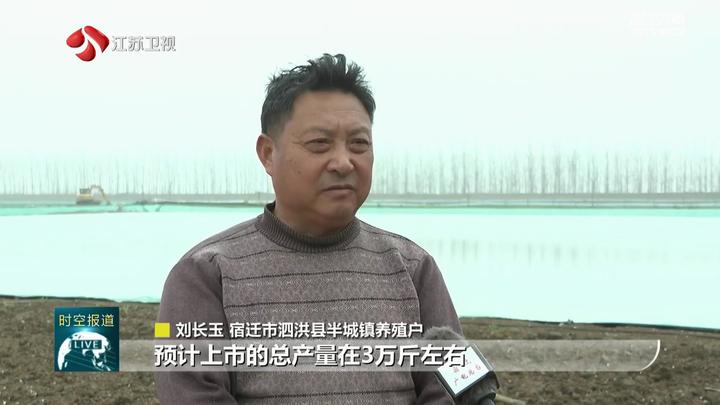 宿迁市泗洪县半城镇养殖户刘长玉告诉记者,今年一共养了110亩地塘口,目前已经投放了3500斤苗种,大约在中秋节前后就可以上市了,预计上市总产量在3万斤左右。