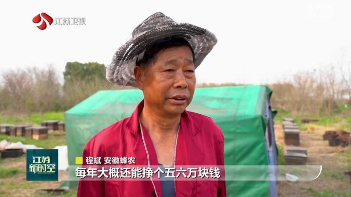 安徽蜂农程斌说,这边油菜花面积大,土地肥沃,流蜜量高,一般每年都能采到3到4吨蜂蜜,每年还能挣个五六万块钱。