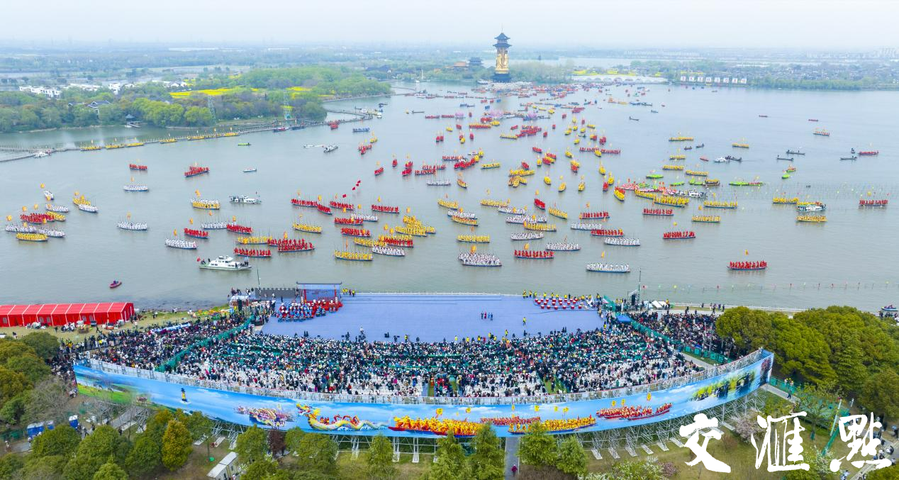 交汇点讯 最美人间四月天,趁春光正好,4月6日,2024泰州姜堰溱潼会船如期开幕。千篙万桨闹溱湖,百舸争流逐春潮,十里溱湖上锣鼓震天,五百多条各式各样的船只和上万名会船选手飞篙走桨、乘风破浪,为现场数万名中外嘉宾游客演绎“世界最大的水上庙会”的壮观景象。