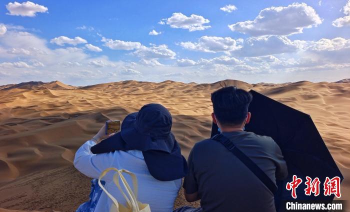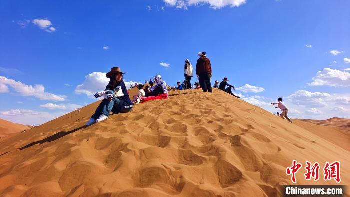 清明小长假,新疆多地天气晴好,位于新疆鄯善县的库木塔格沙漠迎来旅游高峰。据该景区内工作人员介绍,假期内日均游客近万人次。私家车及旅游大巴排着长队进出,高耸的沙山上,摆拍打卡、打闹、滑沙、体验沙海“冲浪”的游人如织,一队队载着游客的驼队穿梭于沙丘间。