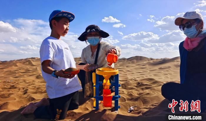 夕阳西下,游客仍兴致勃勃地在沙海中“撒欢”。史玉江 摄