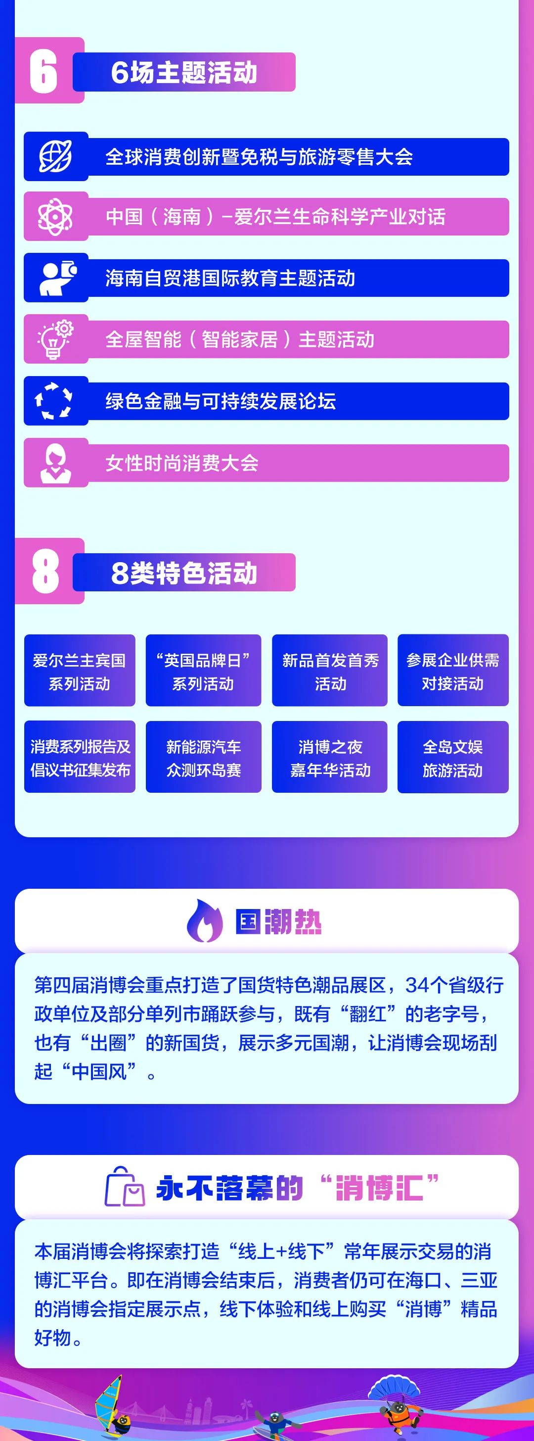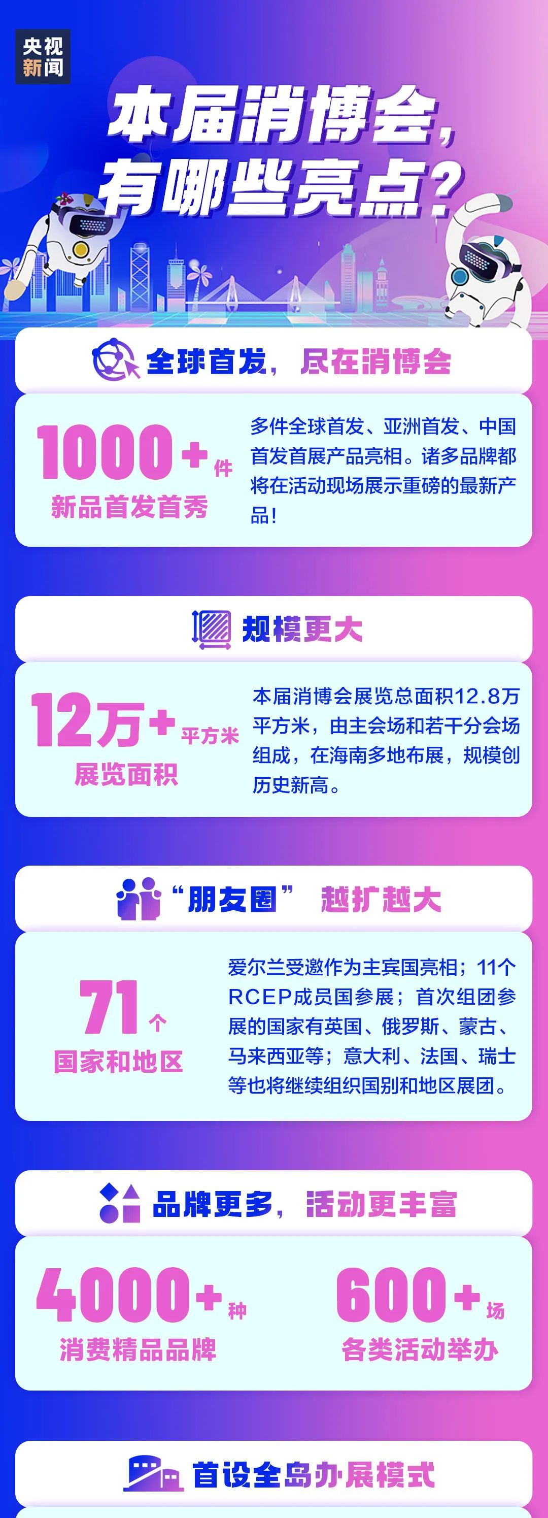 4月13日,第四届中国国际消费品博览会(简称“消博会”)在海南海口开幕。作为2024年中国首场重大国际性展会,本届消博会从展会规模、参展阵容、活动设置等方面延续前三届火爆势头。那么,今年的消博会有哪些亮点,又将有哪些首发首秀活动?通过一组图来“种草”↓↓↓