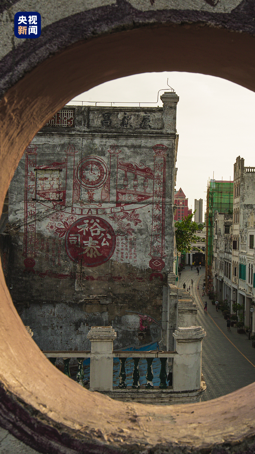 骑楼外表有精致的雕花和洋派装饰,中西合璧,色彩多样,在阳光照耀下格外吸引眼球。
