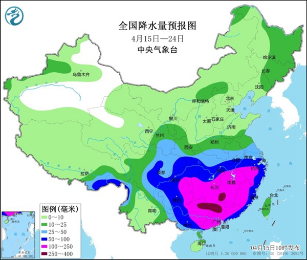 展望未来,预计今后10天,南方将先后经历三轮降雨过程(15-17日、18-20日、21-23日)。其中,18日至20日,江汉、江淮、江南、华南及四川盆地、贵州等地有中到大雨,局地暴雨或大暴雨,部分地区伴有强对流天气。