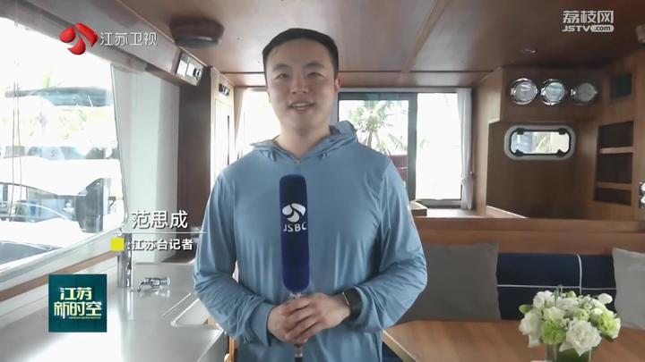 江苏台记者范思成:记者登上一艘来自北欧芬兰的游艇,这也是今年在消博会全国首发的一款。游艇内部由全柚木装饰,还提供更大的休闲和休息空间,50平方做到3室1厅2卫。