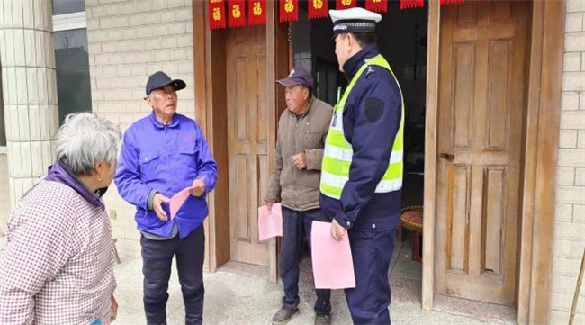 农村地区留守老人居多,安全意识差,是发生交通事故的主要群体。中队组织警力走进村居村民家中,宣传上路行驶遵守交通法规,让老年群体知危险、会避险。